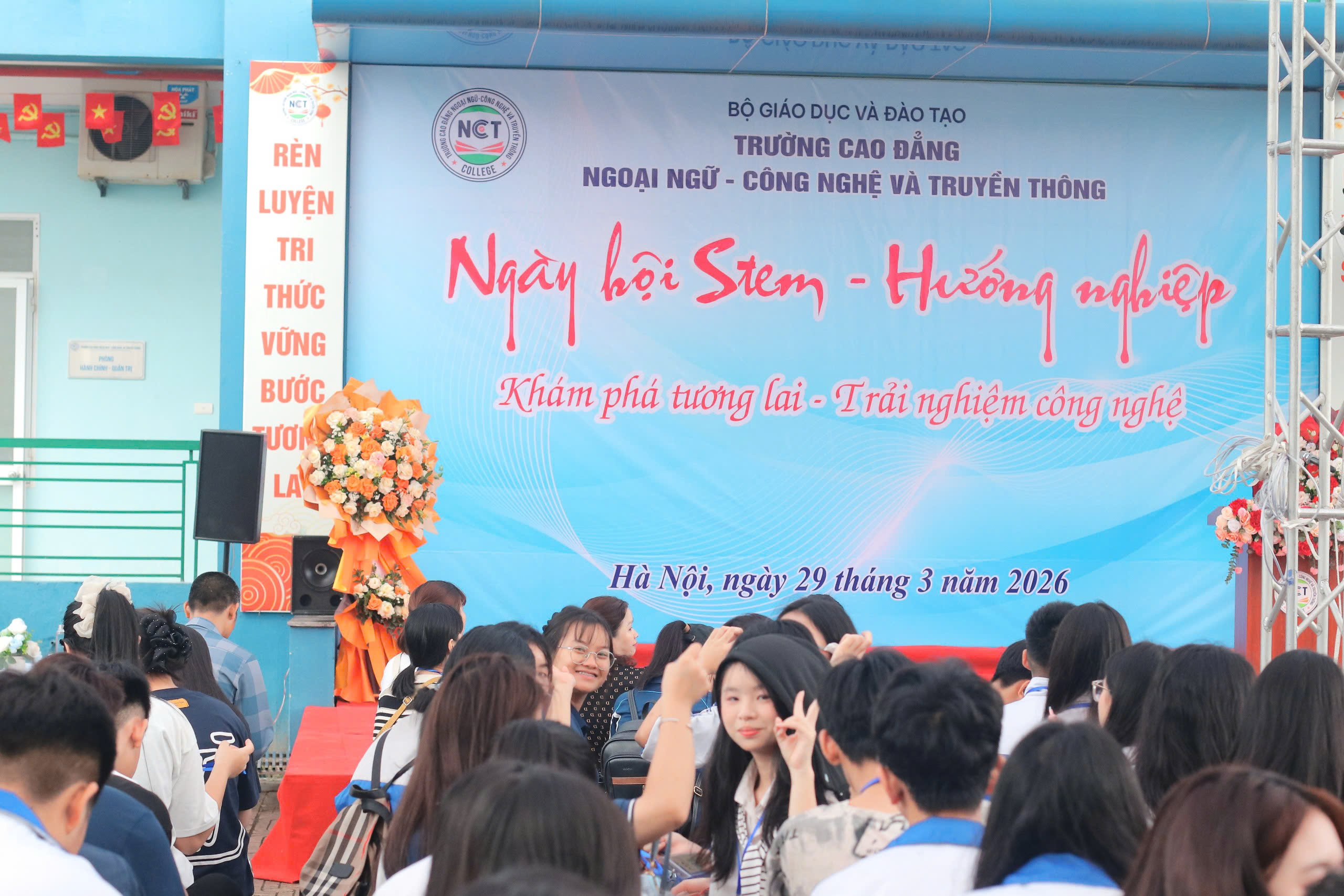 Sáng ngày 29/03/2026, Trường Cao đẳng Ngoại ngữ – Công nghệ và Truyền thông (NCT College) đã tổ chức thành công chương trình Ngày hội STEM – Hướng nghiệp 2026 với chủ đề “Khám phá tương lai – Trải nghiệm công nghệ”. Sự kiện đã thu hút sự tham gia của đông đảo bậc phụ huynh cùng các bạn học sinh THCS trên địa bàn Hà Nội, mang đến một không gian học tập – trải nghiệm sôi động, sáng tạo và đầy cảm hứng.