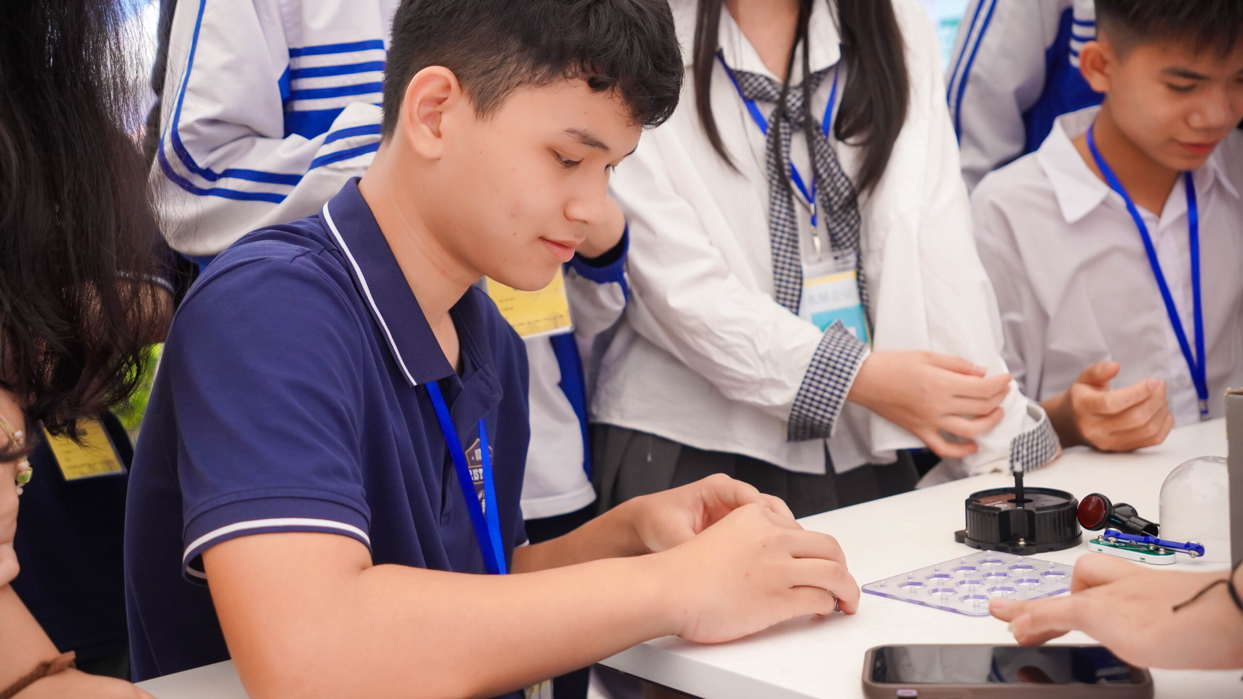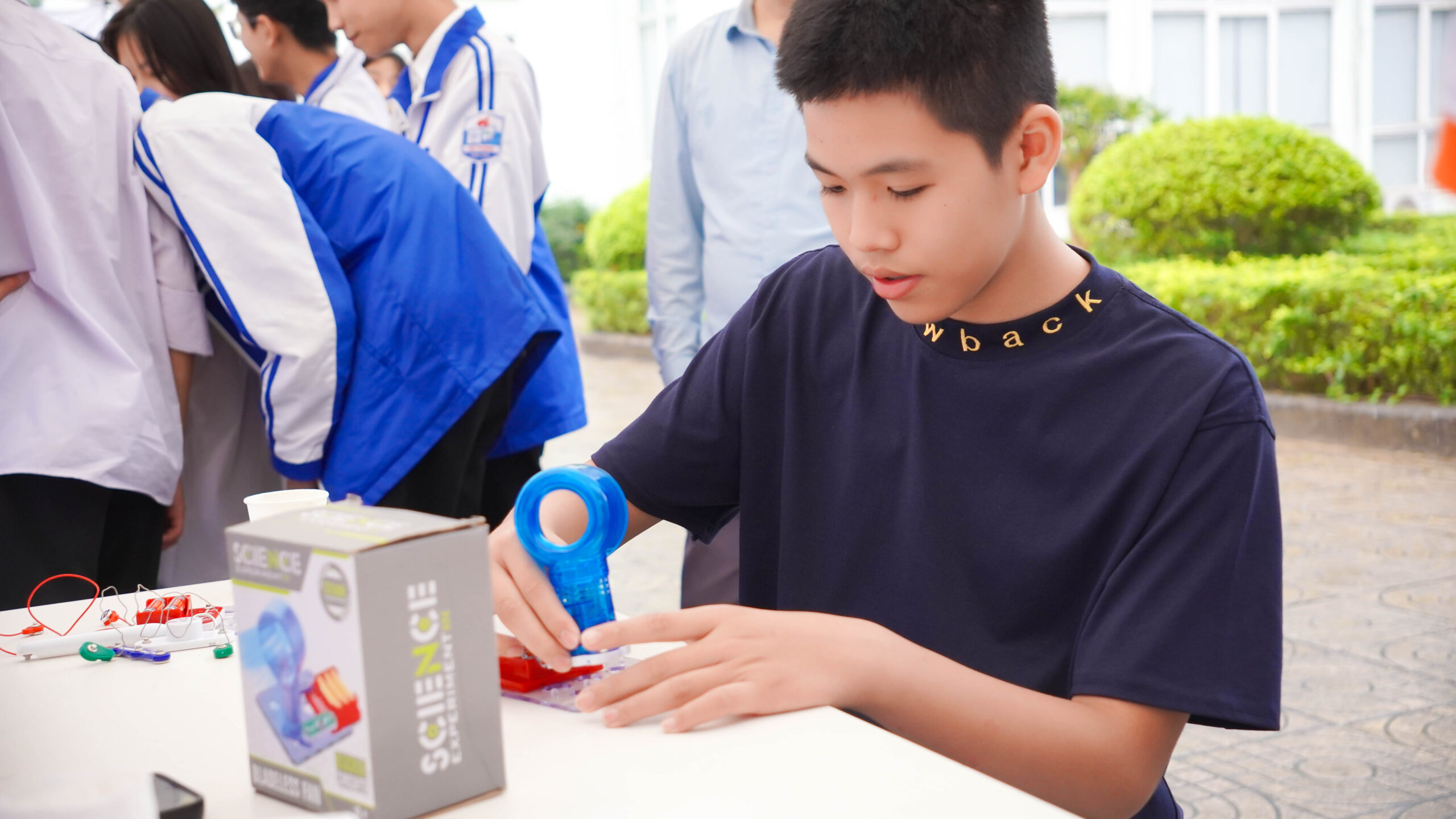 Mỗi trạm trải nghiệm là một “cánh cửa” mở ra những kiến thức mới, giúp học sinh hiểu rõ hơn về ứng dụng của khoa học – công nghệ trong thực tiễn, đồng thời hình dung rõ nét hơn về các ngành nghề trong tương lai. Thông qua việc trực tiếp tham gia vào các hoạt động, các bạn không chỉ tiếp thu kiến thức một cách tự nhiên mà còn phát triển kỹ năng tư duy, khả năng sáng tạo và làm việc nhóm.