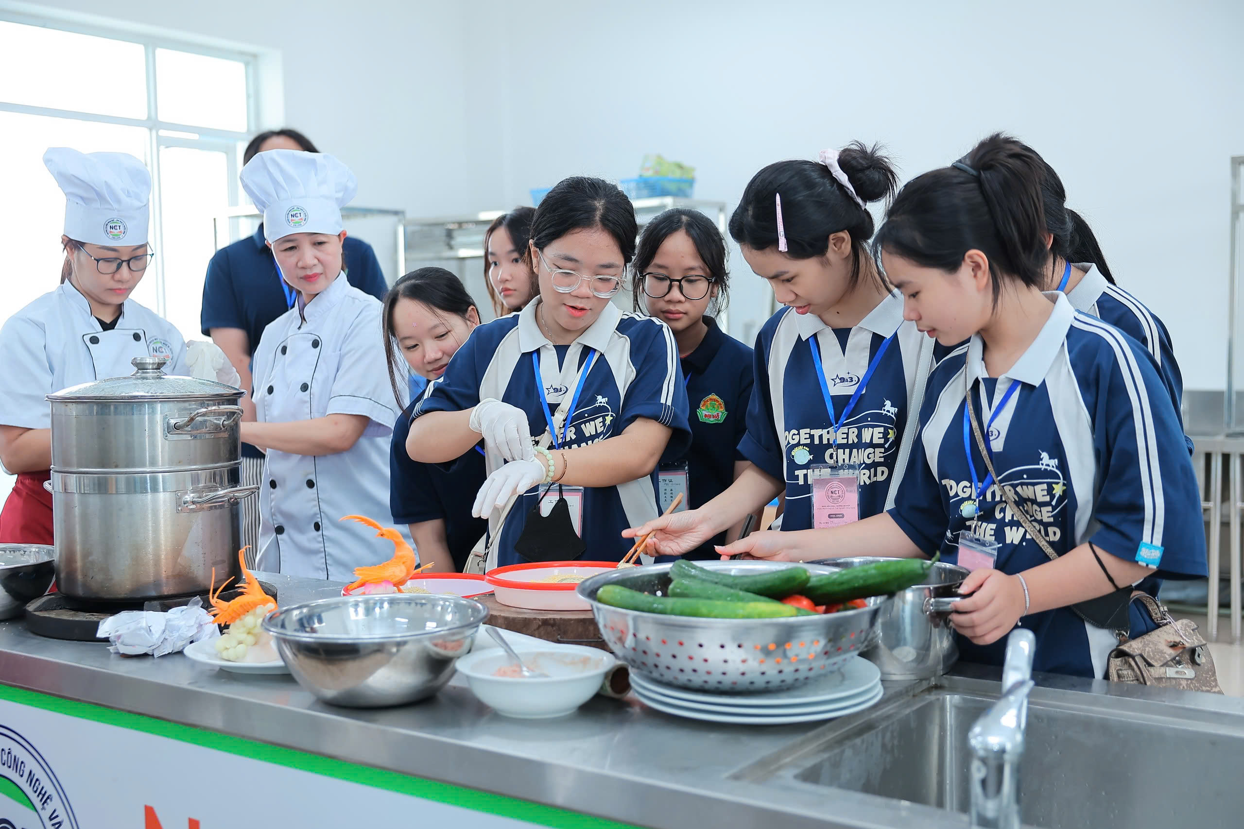 Ngay từ những phút đầu, ngày hội đã tạo nên bầu không khí hào hứng với hệ thống 8 trạm trải nghiệm đa dạng, được thiết kế theo hướng thực hành và tương tác trực tiếp. Tại đây, học sinh không chỉ quan sát mà còn được “chạm – thử – làm” như những người học nghề thực thụ. Các hoạt động nổi bật có thể kể đến như: điều khiển robot, tìm hiểu về trí tuệ nhân tạo, lắp ráp mạch điện, khám phá phòng thí nghiệm Tesla, sáng tạo slime khoa học, cũng như trải nghiệm các lĩnh vực gần gũi với đời sống như ẩm thực, làm đẹp và truyền thông.