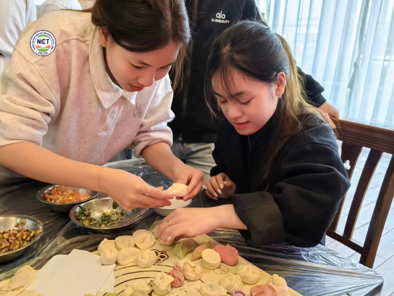 Trong khuôn khổ chương trình học tập và trải nghiệm quốc tế tại Trung Quốc, sinh viên Trường Cao đẳng Ngoại ngữ – Công nghệ và Truyền thông (NCT) đã có cơ hội tham gia lớp học làm bánh sủi cảo truyền thống. Đây là hoạt động ý nghĩa, kết hợp giữa học ngôn ngữ và khám phá văn hóa bản địa, mang đến cho sinh viên những trải nghiệm học tập sinh động và thực tế.
