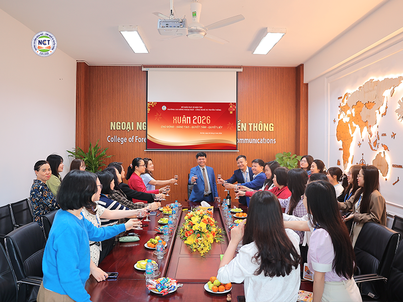 Trong không khí hân hoan của những ngày đầu năm mới, Trường Cao đẳng Ngoại ngữ – Công nghệ và Truyền thông đã tổ chức chương trình họp mặt đầu Xuân 2026, đánh dấu sự khởi đầu cho một năm làm việc mới với tinh thần phấn khởi, đoàn kết và quyết tâm cao của toàn thể cán bộ, giảng viên, nhân viên Nhà trường.