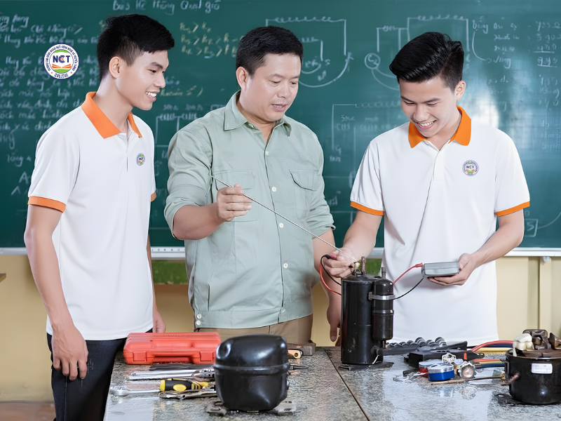 Mỗi tiết thực hành tại NCT không chỉ là một buổi học, mà là một bước tiến giúp sinh viên hiểu nghề – vững kỹ năng – sẵn sàng hội nhập. Với định hướng đào tạo gắn liền thực tiễn, NCT đang từng ngày đồng hành cùng sinh viên trên hành trình trở thành những kỹ thuật viên điện lạnh lành nghề, đáp ứng nhu cầu ngày càng cao của xã hội.